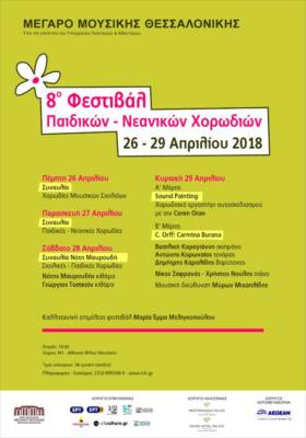 Πάνω από 1.000 παιδιά και νέοι θα περάσουν από τη σκηνή του Μεγάρου Μουσικής Θεσσαλονίκης το τετραήμερο 26-29 Απριλίου 2018, για το 8ο Φεστιβάλ Παιδικών – Νεανικών Χορωδιών. Ο επιτυχημένος θεσμός του Μεγάρου, μια μεγάλη διοργάνωση που προάγει τις αξίες της συνεργασίας, της ομαδικότητας και της συμμετοχής, θα δώσει φέτος βήμα σε περισσότερα από 20 χορωδιακά σχήματα από όλη την Ελλάδα, που θα παρουσιάσουν τη δουλειά τους αλλά και θα συμπράξουν σε ενδιαφέρουσες δράσεις και συναυλίες. Ξεχωριστές στιγμές του Φεστιβάλ, η συναυλία του Νότη Μαυρουδή, το χορωδιακό εργαστήρι αυτοσχεδιασμού με την Ceren Oran (Τζερέν Οράν) και η παρουσίαση των Carmina Burana υπό τη μουσική διεύθυνση του Μύρωνα Μιχαηλίδη.