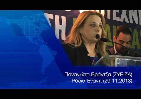 Η βουλευτής Καρδίτσας Παναγιώτα Βράντζα (ΣΥΡΙΖΑ) μίλησε στο Ράδιο Έναντι και την εκπομπή “Εκλεκτικές Συγγένειες” με τον Ανδρέα Σταματόπουλο.