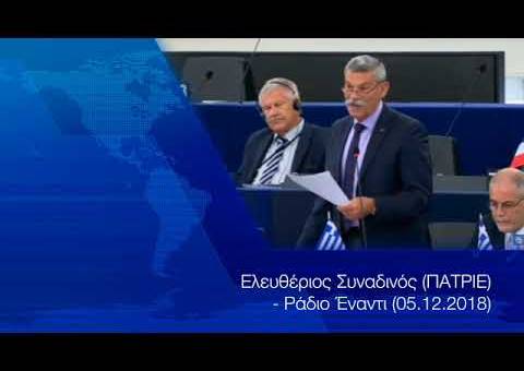Ο ανεξάρτητος ευρωβουλευτής και επικεφαλής της ΠΑΤΡΙΕ στρατηγός Ελευθέριος Συναδινός μίλησε στο Ράδιο Έναντι και την εκπομπή “Εκλεκτικές Συγγένειες” με τον Ανδρέα Σταματόπουλο.