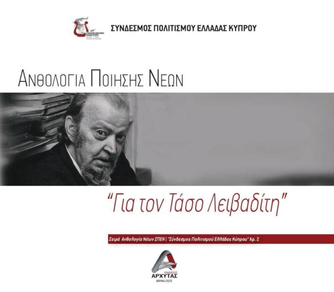 «Για τον Τάσο Λειβαδίτη» είναι ο τίτλος της Ανθολογίας Νέων που κυκλοφορεί από τον Σύνδεσμο Πολιτισμού Ελλάδας Κύπρου σε συνεργασία με τις εκδόσεις Αρχύτας. Τριάντα πέντε (35) νέοι-νέες γράφουν το δικό τους ποίημα/ πεζόμορφο κείμενο, εμπνεόμενοι από συγκεκριμένα ποιήματα, αλλά και το εν γένει έργο του Τάσου Λειβαδίτη, μας παρουσιάζουν τον εαυτό τους και απαντούν σε ερωτήσεις περί ποίησης και έμπνευσης. Η φιλολογική εποπτεία και ο χαιρετισμός της έκδοσης έγινε από μέλη της Επιτροπής Αξιολόγησης: Ζωή Σαμαρά, Ομότιμη Καθηγήτρια Α.Π.Θ., Νίκος Ευθυμίου, Φιλόλογος – Εκπαιδευτικός, Έλενα Καραγιάννη – Βαρνάβα, Φιλόλογος – Εκπαιδευτικός – Συγγραφέας, Δρ Ιωσήφ Σ. Ιωσηφίδης, Πρόεδρος Ένωσης Λογοτεχνών Κύπρου και Αντιπρόεδρος Συνδέσμου Πολιτισμού Ελλάδας Κύπρου, Σίσσυ Σιγιουλτζή-Ρουκά, Πρόεδρος Συνδέσμου Πολιτισμού Ελλάδας Κύπρου..