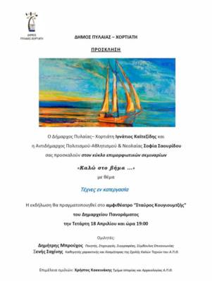 Mε ένα ταξίδι στα μυστικά της τέχνης και της δημιουργίας συνεχίζεται ο κύκλος επιμορφωτικών σεμιναρίων με τον γενικό τίτλο: «Καλώ στο βήμα…», που διοργανώνει ο Δήμος Πυλαίας-Χορτιάτη. Αυτή τη φορά δύο κορυφαίοι δημιουργοί του πνεύματος και της τέχνης, ο ποιητής-στιχουργός-συγγραφέας, σύμβουλος επικοινωνίας και μέλος του ΔΣ της Εταιρίας Λογοτεχνών Θεσσαλονίκης Δημήτρης Ι. Μπρούχος και ο εικαστικός Ξενής Ν. Σαχίνης, που είναι καθηγητής Χαρακτικής και Κοσμήτορας της Σχολής Καλών Τεχνών του ΑΠΘ παρουσιάζουν ο καθένας από τη μεριά του το θέμα: «Τέχνες εν κατεργασία».
