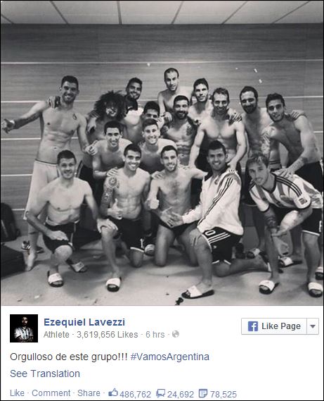 Ο Εζεκιέλ Λαβέτσι ανέβασε μία φωτογραφία από τα αποδυτήρια των Αργεντινών, στην σελίδα του στο Facebok και έγραψε… “Vamos Argentina”.
