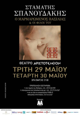 Δύο μεγάλες συναυλίες με τον τίτλο «Ο Μαρμαρωμένος Βασιλιάς και οι φίλοι του» θα δώσει ο Σταμάτης Σπανουδάκης στο Θέατρο Αριστοτέλειον της Θεσσαλονίκης την Τρίτη 29 και την Τετάρτη 30 Μαΐου 2018, με την ευγενική χορηγία της εταιρείας MYTILINEOS.