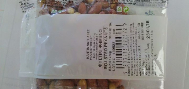 Η μη επιτρεπόμενη χρωστική αζωρουμπίνη Ε122, βρέθηκε να περιέχεται σε συσκευασία με ψημένο φυστίκι, και ο ΕΦΕΤ ζήτησε την άμεση ανάκληση του συνόλου των παρτίδων του προϊόντος.