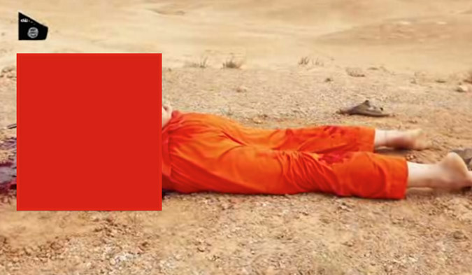 Στο φρικιαστικό βίντεο, ο ένοπλος απευθύνεται στην αμερικανική κυβέρνηση και την καλεί να σταματήσει τα πλήγματα στους τζιχαντιστές. Μετά το «κήρυγμα», πιάνει το κεφάλι του ομήρου και τον αποκεφαλίζει με ένα μαχαίρι.