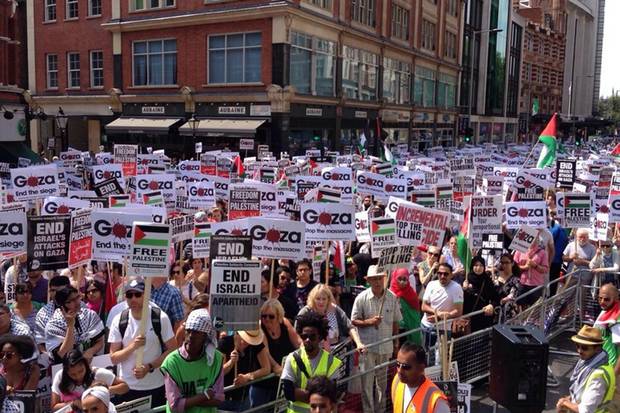 «Ισραήλ, κράτος τρομοκράτη», «Γάζα μην κλαις, δεν θα σε αφήσουμε να πεθάνεις», «Αλλάχου Άκμπαρ», φώναζαν οι διαδηλωτές που συμμετείχαν στην κινητοποίηση ανταποκρινόμενοι στο κάλεσμα της συμμαχίας Σταματήστε Τον Πόλεμο και της αντικαπιταλιστικής συλλογικότητας Occupy London.