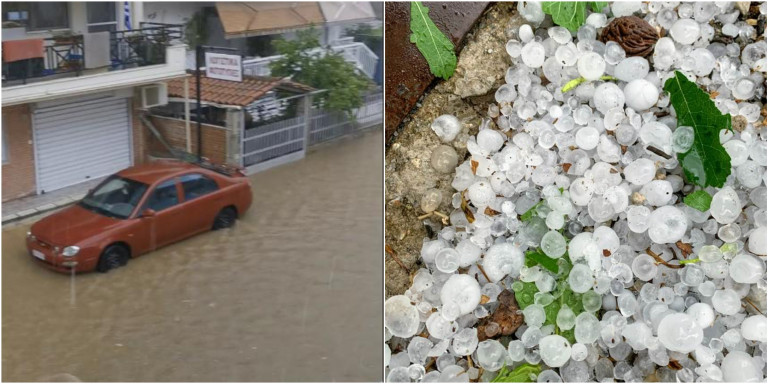 Καιρός: «Κατακλυσμός» στην Χαλκιδική -Χαλάζι έριξε στην Πάτρα