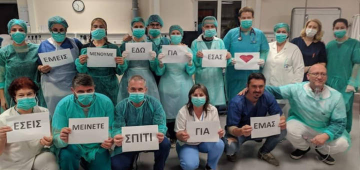 Οι γιατροί και νοσηλευτές του Γενικού Νοσοκομείου Λάρισας στέλνουν το δικό τους μήνυμα, τη δύσκολη αυτή περίοδο που βιώνει η χώρα με την κρίση του κορωνοϊού και συγκινούν. Σε φωτογραφία...