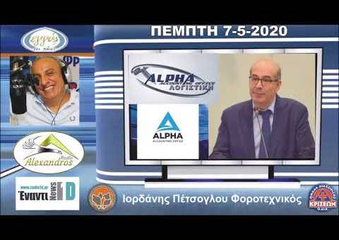 Ο φοροτεχνικός Ιορδάνης Πέτσογλου μίλησε στην εκπομπή “Εγγύς της Πόλεως” με τον Γιώργο Αρίστογλου και την Γωγώ Καρανίκα (7.5.2020).
