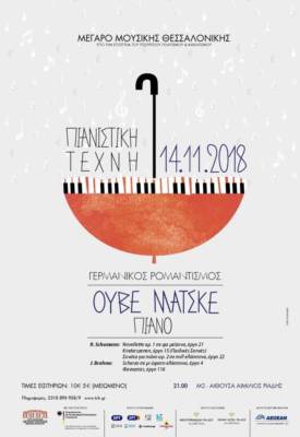 Έργα του Robert Schumann και του Johannes Brahms, δύο από τις πλέον εμβληματικές φιγούρες του γερμανικού μουσικού ρομαντισμού, θα παρουσιάσει στις 14 Νοεμβρίου στο Μέγαρο Μουσικής Θεσσαλονίκης ο διακεκριμένος πιανίστας Ούβε Μάτσκε.