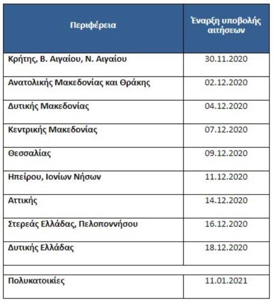 Σύμφωνα με το ΥΠΕΝ, το «Εξοικονομώ – Αυτονομώ» θα κάνει… πρεμιέρα στις 30 Νοεμβρίου σύμφωνα με το ακόλουθο χρονοδιάγραμμα υποβολής αιτήσεων ανά Περιφέρεια:
